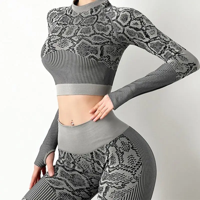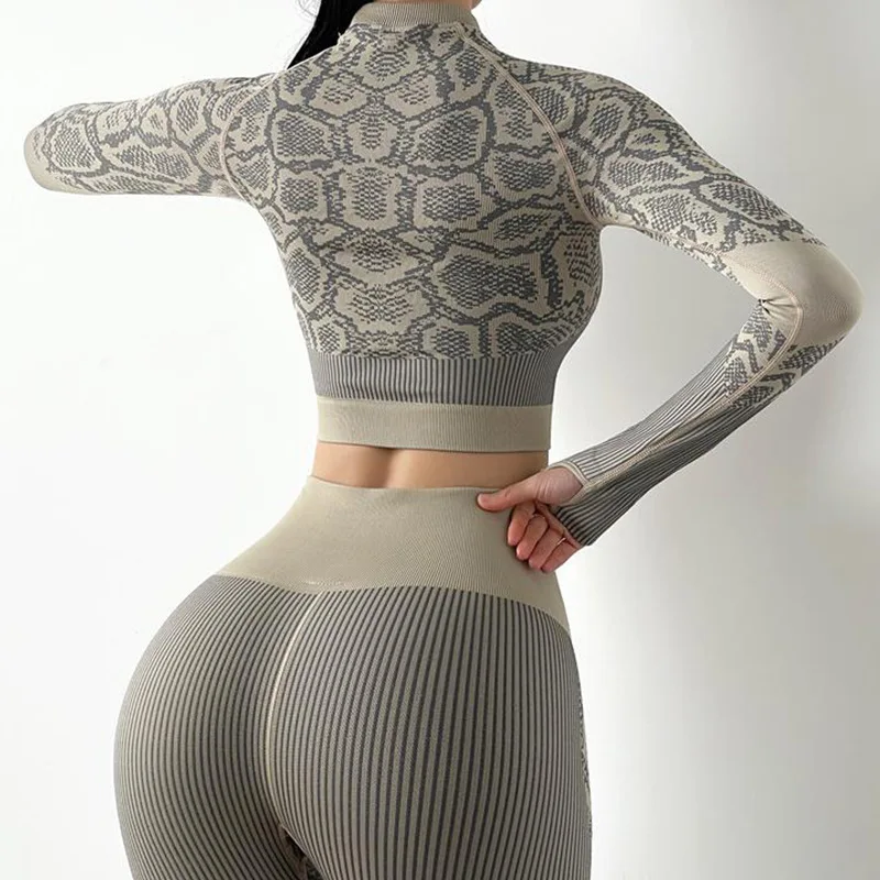 TOPKO Factory Wholesale Manufacture High Quality ODM OEM Women Seamless Yoga 2 Piece Legging Set Long Sleeves Workout Wear